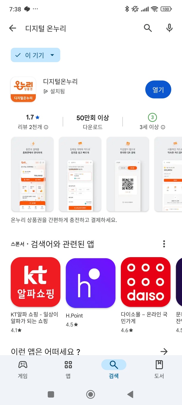 1️⃣ 디지털 온누리상품권 앱을 다운로드