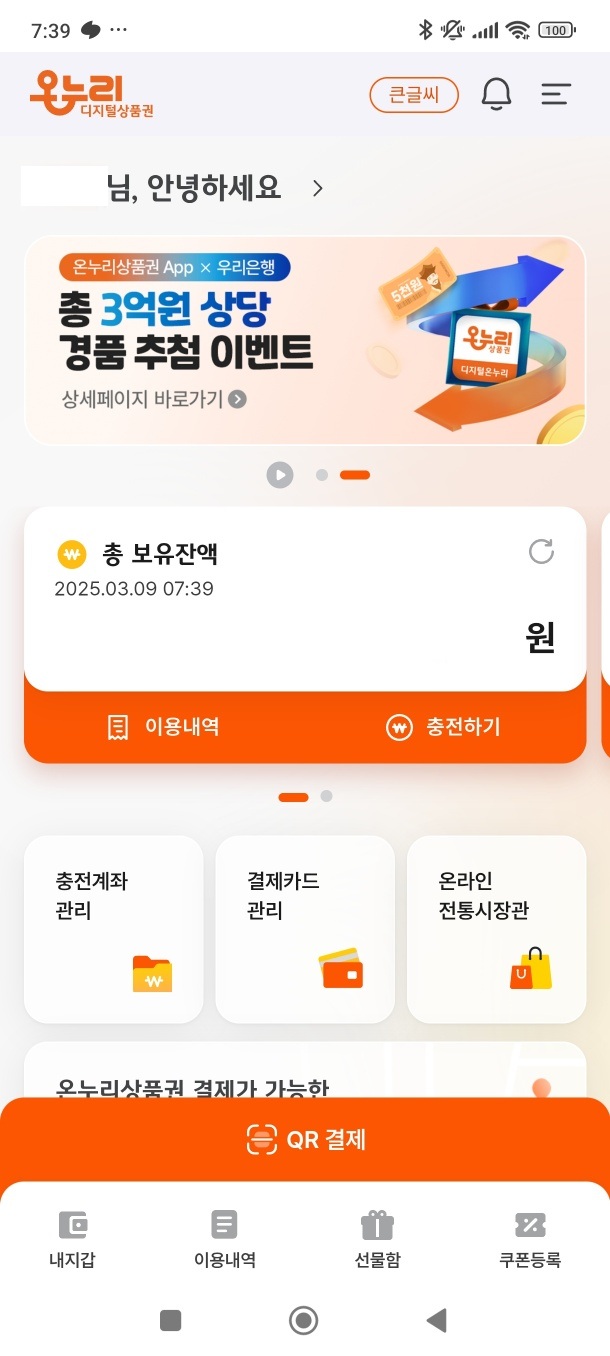 3️⃣ 상품권 충전 & 가맹점에서 QR 결제